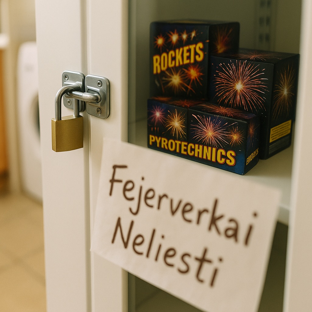 Saugus fejerverkų laikymas namuose