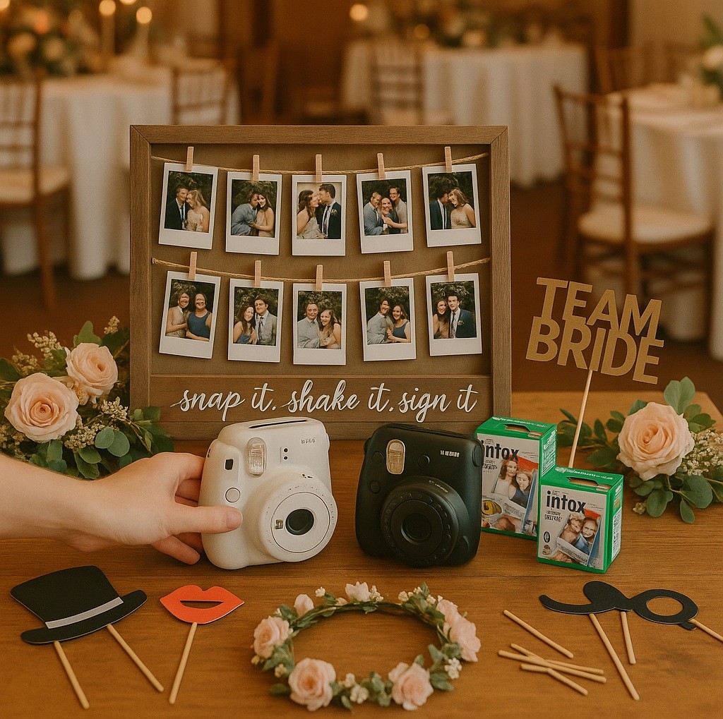Kokie kiti vestuvių aksesuarai gerai dera su momentiniais fotoaparatais?
