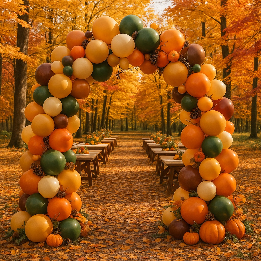 Balionai, kaip universali dekoravimo priemonė, gali puikiai papildyti rudens švenčių nuotaiką, sukurdami įspūdingą vizualinį poveikį ir jaukią atmosferą. Jie lengvai prisitaiko prie skirtingų erdvių, gali būti derinami su natūraliomis rudens puošmenomis ir suteikia šventei gyvybingumo.