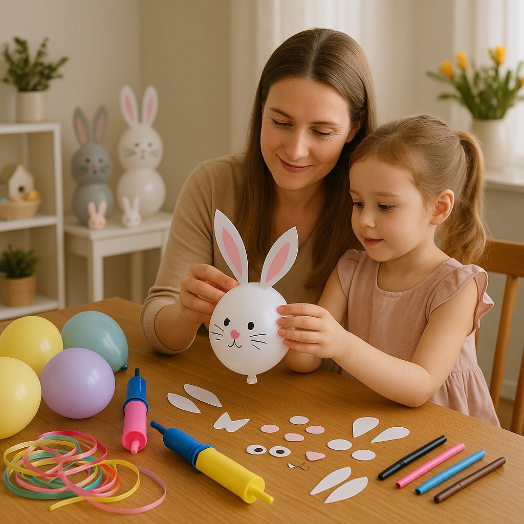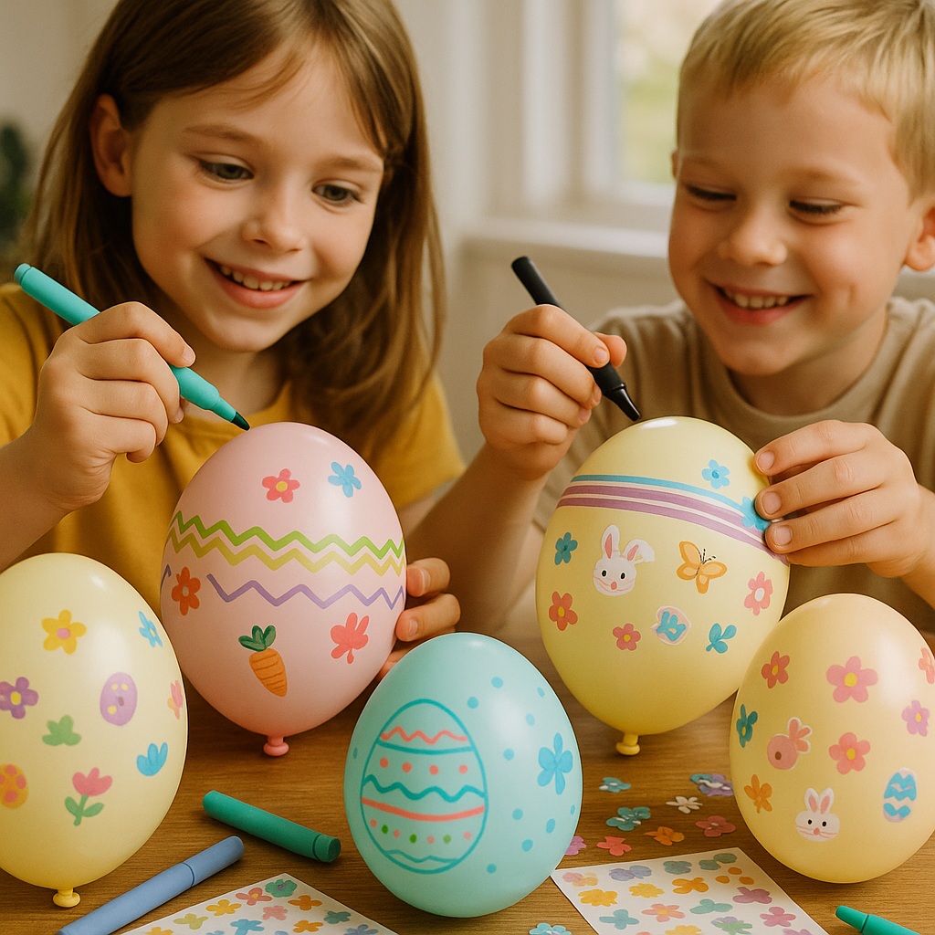 Jaunesniems vaikams galite pasiūlyti paprastas užduotis: priklijuoti akis ir nosį ant balionų kiškučių, piešti ant balionų su netoksiškais žymekliais ar padėti išdėlioti jau paruoštus balionus. Vyresni vaikai gali dalyvauti kuriant balionų skulptūras, pinti balionų girliandas ar sugalvoti savo originalias dekoracijas.